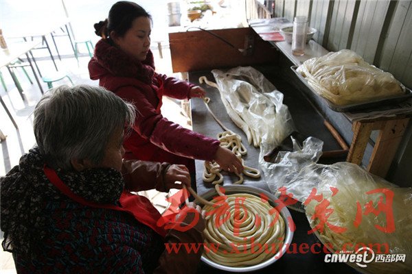 20多年婆媳倆起早貪黑,用心做面,她們的面口感筋道,味道好,再加上量大,很受歡迎。在附近干活的農(nóng)民工吃過一次后,幾乎每天都來吃她家的面,一大碗8元,一個下苦干體力活的農(nóng)民工也能吃得飽飽的。婆媳倆每天從早上6點忙到晚上8點,一天能賣100多碗面。