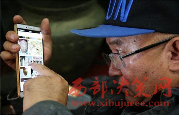 2016年9月21日,陜西榆林,劉福學(xué)通過(guò)微信等網(wǎng)絡(luò)平臺(tái)和收藏愛(ài)好者交流。
