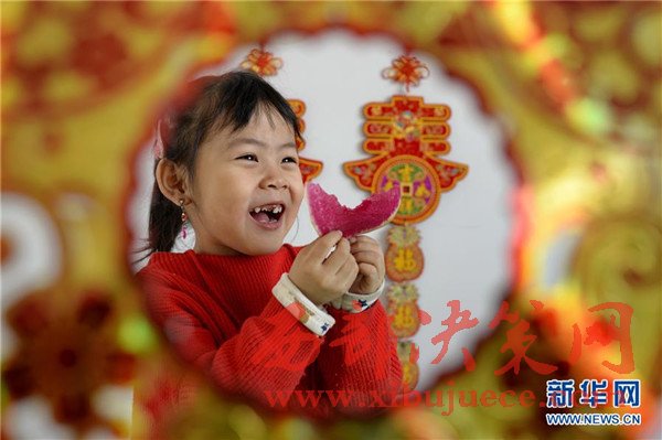 2月3日,河北省邢臺市橋東區(qū)三義廟社區(qū)的兒童在社區(qū)兒童娛樂室吃蘿卜“咬春”。