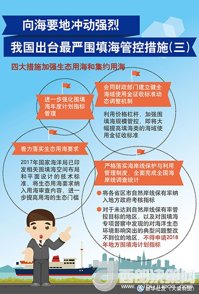 ——著力落實生態(tài)用海要求,2017年國家海洋局已印發(fā)相關(guān)圍填海空間布局和平面設(shè)計的技術(shù)標準,將生態(tài)用海要求納入用海審查內(nèi)容,進一步提高用海的生態(tài)門檻。