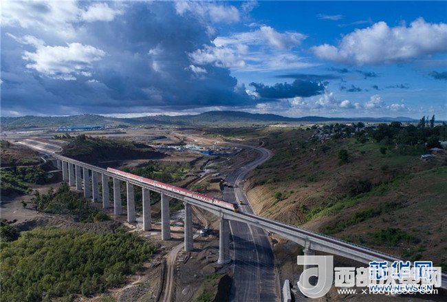 2017年5月12日,列車從肯尼亞蒙內(nèi)鐵路沿線的馬澤拉斯鐵路大橋上駛過。蒙內(nèi)鐵路連接肯尼亞首都內(nèi)羅畢和東非第一大港蒙巴薩,全長約480公里,是一條采用中國標準、中國技術(shù)、中國裝備建造的現(xiàn)代化鐵路。記者陳誠攝