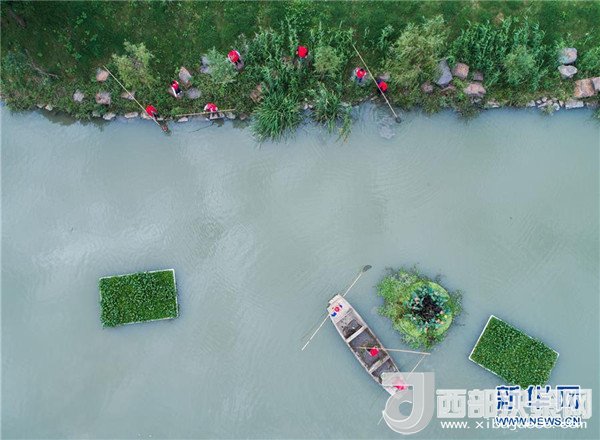 在浙江省長興縣劉家渡河道南太湖段,河長帶領(lǐng)專職保潔人員進(jìn)行日常的鄉(xiāng)村河道護(hù)理(2017年10月13日攝)。記者 徐昱 攝