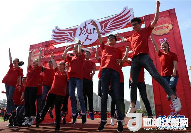 安徽淮南市第二中學(xué)學(xué)生穿越“成人門”(2018年5月4日攝)。新華社發(fā)(陳彬 攝)