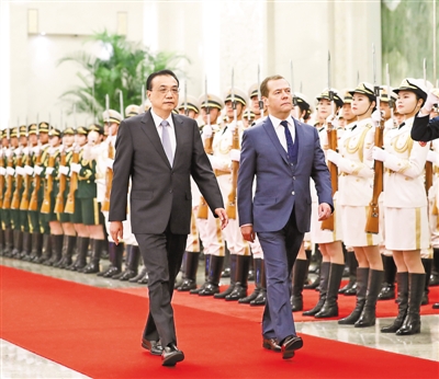 李克強指出,今年以來,中俄經(jīng)貿(mào)合作持續(xù)快速發(fā)展,年內(nèi)貿(mào)易額有望突破1000億美元,未來合作潛力巨大。希望雙方繼續(xù)提升貿(mào)易便利化水平,擴大相互投資規(guī)模,深化農(nóng)業(yè)合作,推進中俄跨境電子商務健康穩(wěn)定發(fā)展,加強在創(chuàng)新領域、特別是在科技應用和基礎研究領域合作。以今明兩年舉辦中俄地方合作交流年為契機,調(diào)動兩國各地方開展更加廣泛的合作。繼續(xù)深化人文交流,加強媒體、青年、旅游、衛(wèi)生、體育各領域交流。