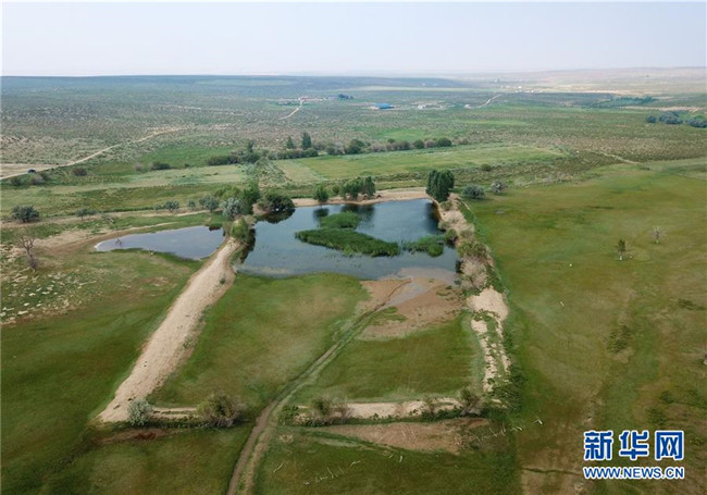 內(nèi)蒙古杭錦旗沙日召嘎查牧民白音道爾計治理過的庫布其沙漠(7月31日無人機(jī)拍攝)。新華社記者邢廣利攝