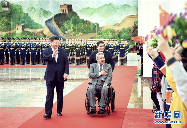 習近平指出,2016年,我對厄瓜多爾進行國事訪問,兩國建立全面戰(zhàn)略伙伴關(guān)系,翻開了中厄關(guān)系發(fā)展新篇章??偨y(tǒng)先生上任后致力于深化中厄友好合作,我對此表示贊賞。推動中厄關(guān)系健康穩(wěn)定發(fā)展,符合兩國和兩國人民根本利益,也符合和平、發(fā)展、合作、共贏的時代潮流。