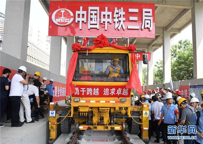 12日上午,京張高鐵最后一根鋼軌在中鐵三局WZ-500型無砟軌道鋪軌機牽引下準確落在清華園隧道的枕木上,精調(diào)之后,軌距誤差在正負1毫米之內(nèi)。被譽為中國鐵路發(fā)展“集大成者”、智能高鐵示范工程的京張高鐵實現(xiàn)全線軌道貫通。