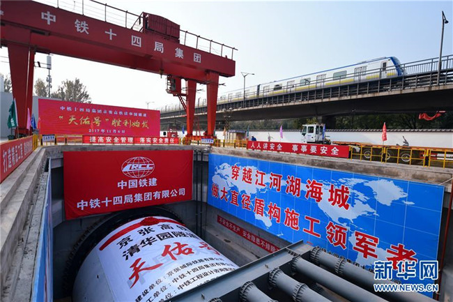 京張高鐵清華園隧道“天佑號”盾構(gòu)機始發(fā)掘進(2017年11月6日攝)。新華社記者 張晨霖 攝