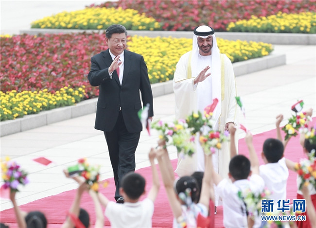 習近平說,去年7月,我對阿聯(lián)酋成功進行國事訪問,我們共同宣布中阿建立全面戰(zhàn)略伙伴關(guān)系,開啟中阿攜手共進的嶄新篇章。一年來,雙方積極落實訪問成果,兩國關(guān)系保持全方位、高質(zhì)量發(fā)展。