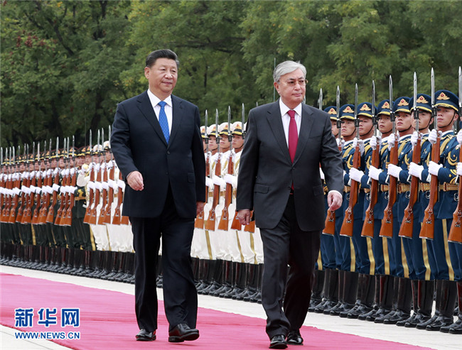 9月11日,國家主席習(xí)近平在北京人民大會(huì)堂同哈薩克斯坦總統(tǒng)托卡耶夫舉行會(huì)談。這是會(huì)談前,習(xí)近平在人民大會(huì)堂東門外廣場(chǎng)為托卡耶夫舉行歡迎儀式。 新華社記者 黃敬文 攝