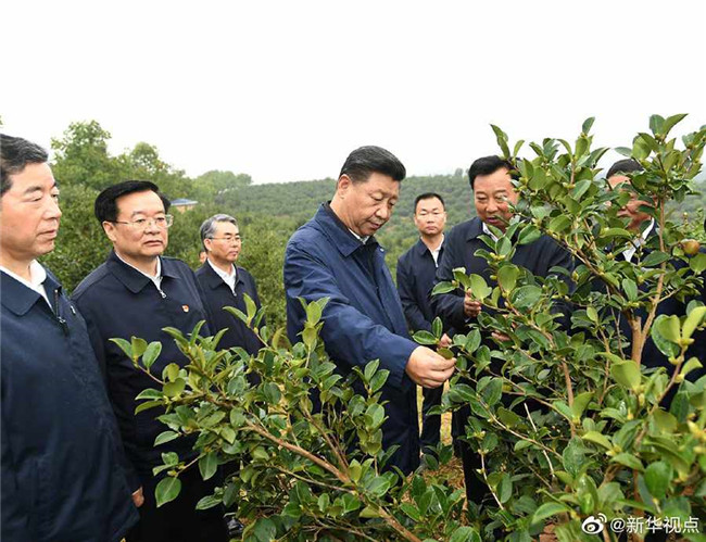 習(xí)近平在光山縣深入油茶園和農(nóng)村考察調(diào)研