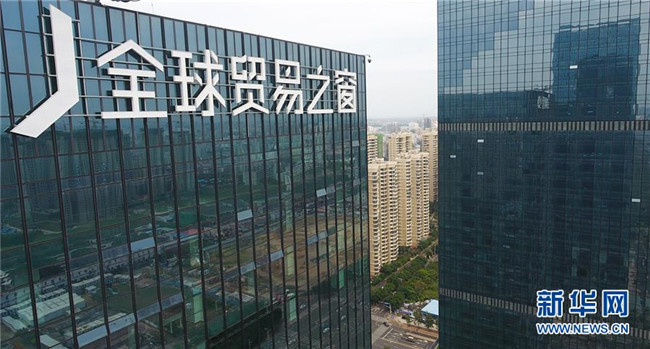 12月5日無(wú)人機(jī)拍攝的位于??谑写笥⑸紺BD的??谌蛸Q(mào)易之窗大廈。 新華社記者 楊冠宇 攝