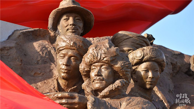 △坐落于中央黨校的大型組雕《旗幟》,刻畫了中國(guó)特色社會(huì)主義建設(shè)者昂揚(yáng)的精神風(fēng)貌。(來(lái)源:中央黨校官網(wǎng))