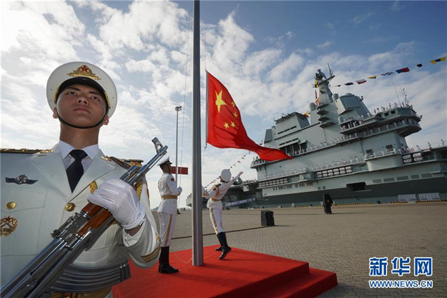 2019年12月17日,我國第一艘國產航空母艦山東艦在海南三亞某軍港交付海軍。經中央軍委批準,我國第一艘國產航母命名為“中國人民解放軍海軍山東艦”,舷號為“17”。這是交接入列儀式現場。 新華社記者 李剛 攝