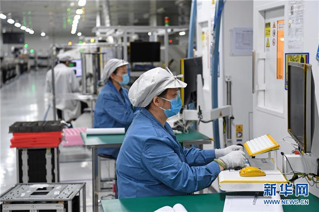 在位于深圳市龍崗區(qū)的海能達(dá)通信有限公司,工人們?cè)谏a(chǎn)車間工作(2月10日攝)。新華社記者 梁旭 攝