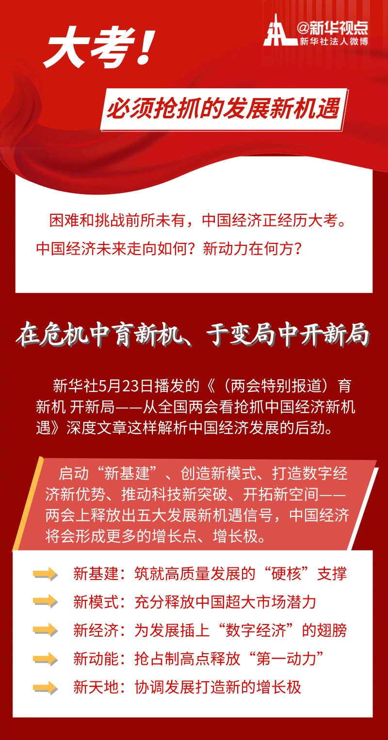啟動“新基建”、創(chuàng)造新模式、打造數(shù)字經(jīng)濟新優(yōu)勢、推動科技新突破、開拓新空間——不斷涌現(xiàn)的新機遇、新趨勢,正匯聚起不竭新動能,推動中國經(jīng)濟乘風破浪、行穩(wěn)致遠。