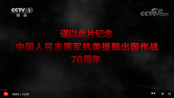 為紀(jì)念中國人民志愿軍抗美援朝出國作戰(zhàn)70周年,經(jīng)中央軍委批準(zhǔn),中央軍委政治工作部組織拍攝了6集大型電視紀(jì)錄片《為了和平》。第五集《萬眾一心》主要反映全國各條戰(zhàn)線和廣大人民積極響應(yīng)黨和政府號召,開展了轟轟烈烈的抗美援朝運(yùn)動,支援前線、支援戰(zhàn)爭,中朝兩國人民和軍隊(duì)密切配合、團(tuán)結(jié)戰(zhàn)斗,形成了同仇敵愾、戰(zhàn)勝一切困難和強(qiáng)大敵人的無窮力量。