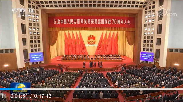 紀(jì)念中國(guó)人民志愿軍抗美援朝出國(guó)作戰(zhàn)70周年大會(huì)在京隆重舉行 習(xí)近平發(fā)表重要講話