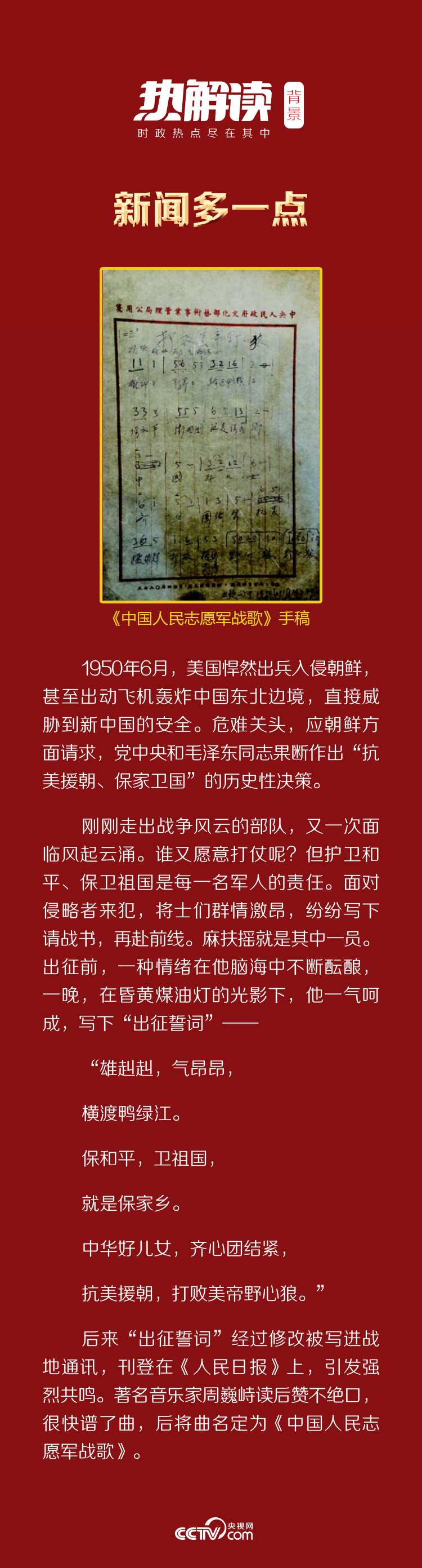 回望,是為了不忘歷史;眺望,是為了更好前行,總書記兩次引用《中國人民志愿軍戰(zhàn)歌》歌詞,意蘊(yùn)深長(zhǎng)。