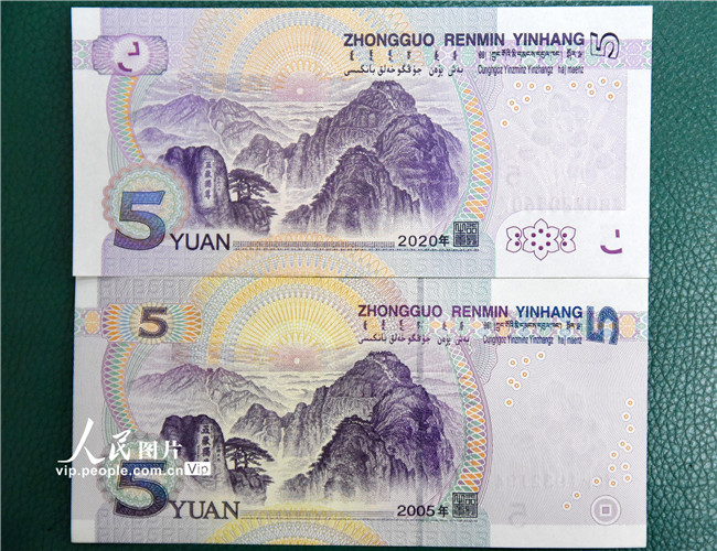 2020年11月5日,中國(guó)人民銀行發(fā)行2020年版第五套人民幣5元紙幣。據(jù)了解,2020年版第五套人民幣5元紙幣保持2005年版第五套人民幣5元紙幣規(guī)格、主圖案、主色調(diào)、“中國(guó)人民銀行”行名、國(guó)徽、盲文面額標(biāo)記、漢語拼音行名、民族文字等要素不變,優(yōu)化了票面結(jié)構(gòu)層次與效果,提升了整體防偽性能,票面年號(hào)改為“2020年”。郝群英/人民圖片