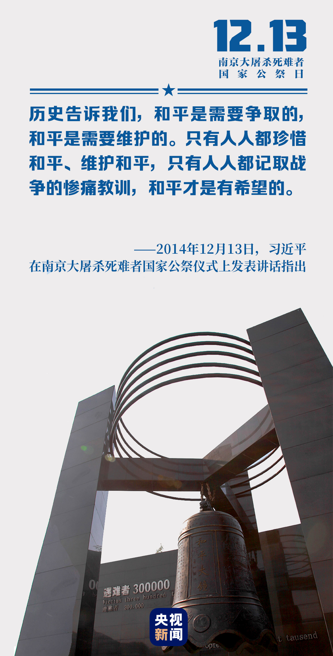 “牢記歷史、不忘過去,珍愛和平、開創(chuàng)未來”,6年前的12月13日,習(xí)近平總書記在公祭儀式上的講話深沉而堅(jiān)定。