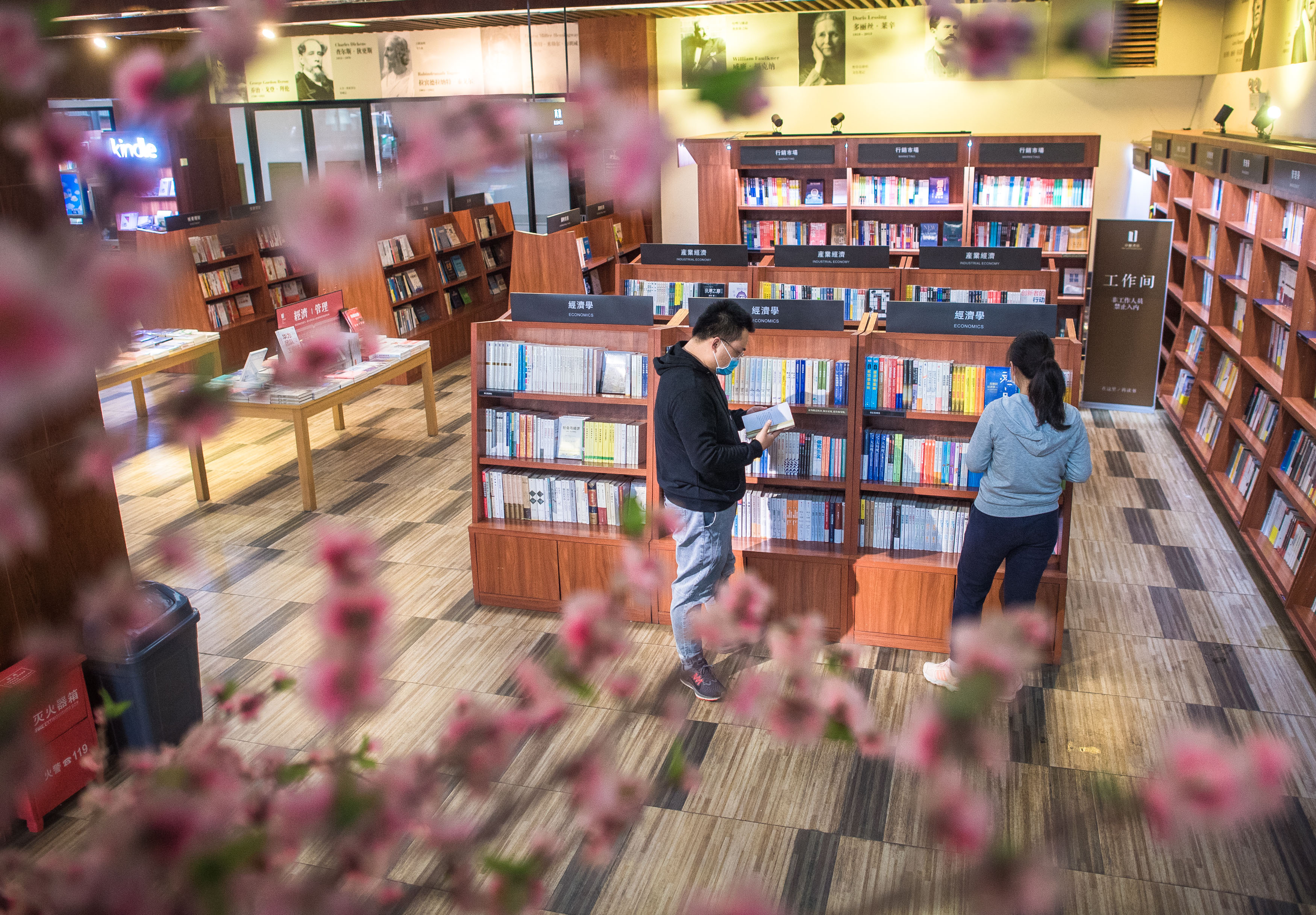 4月18日,在湖北武漢市卓爾書店,讀者在選購圖書。新華社記者 肖藝九 攝