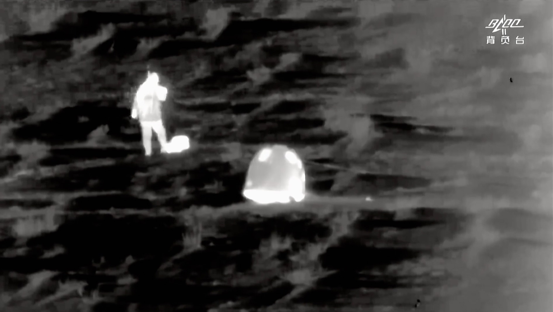 △紅外影像顯示一只小動物從嫦娥五號返回器前跑過