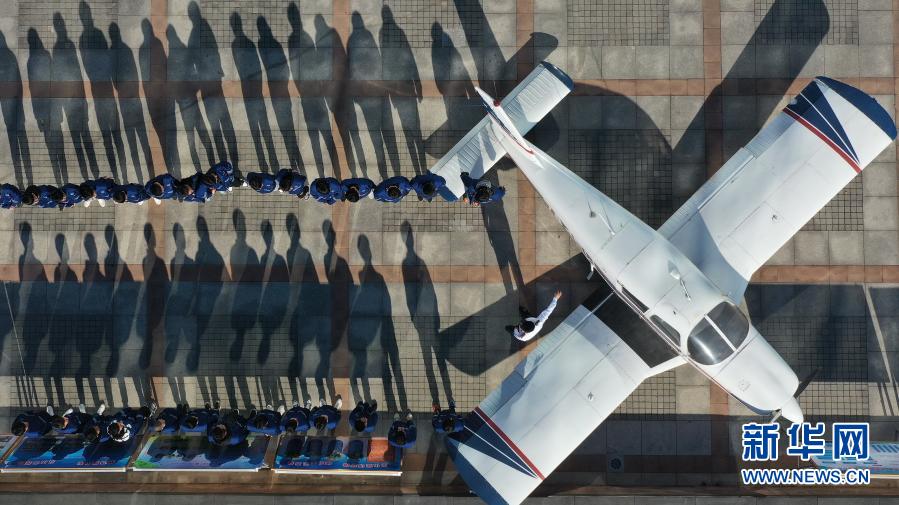 12月17日,河北省唐山市豐潤區(qū)綜合職業(yè)技術(shù)教育中心飛機(jī)維修專業(yè)教師在給學(xué)生上課(無人機(jī)照片)。新華社記者 牟宇 攝