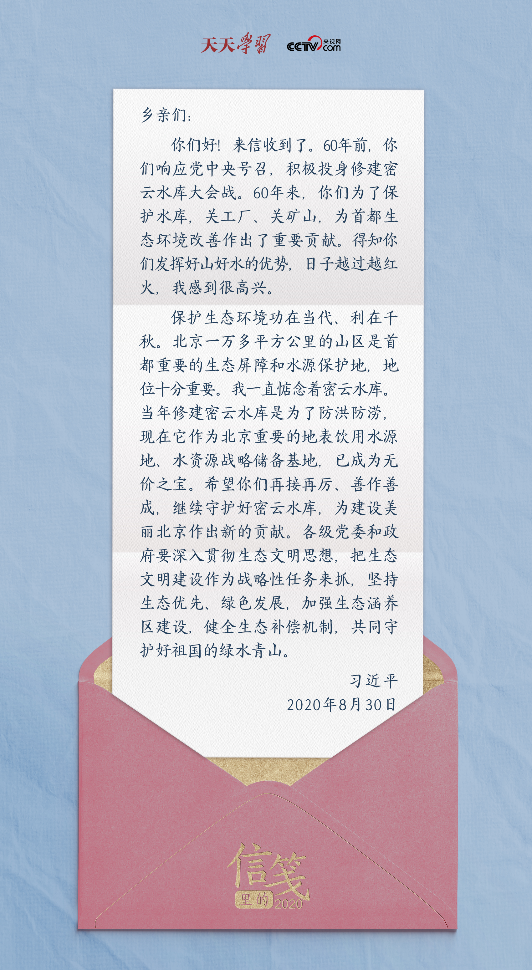 編者按:“云中誰(shuí)寄錦書(shū)來(lái)”。2020這極不平凡的一年里,習(xí)近平總書(shū)記多次以書(shū)信的方式同人民群眾、黨員干部以及各行各業(yè)各界人士交流互動(dòng)。一封封信箋,傳達(dá)關(guān)切、鼓勵(lì)與厚望,筆筆見(jiàn)真情,句句暖人心。歲末之際,央視網(wǎng)《天天學(xué)習(xí)》欄目推出年終策劃“信箋里的2020”,為您講述總書(shū)記回信背后的故事。