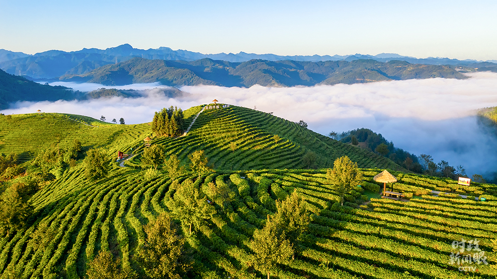 △位于陜西平利縣的蔣家坪茶園,云海環(huán)繞。2020年4月,總書(shū)記曾到這里考察,希望當(dāng)?shù)匾虿柚赂?,因茶興業(yè)。