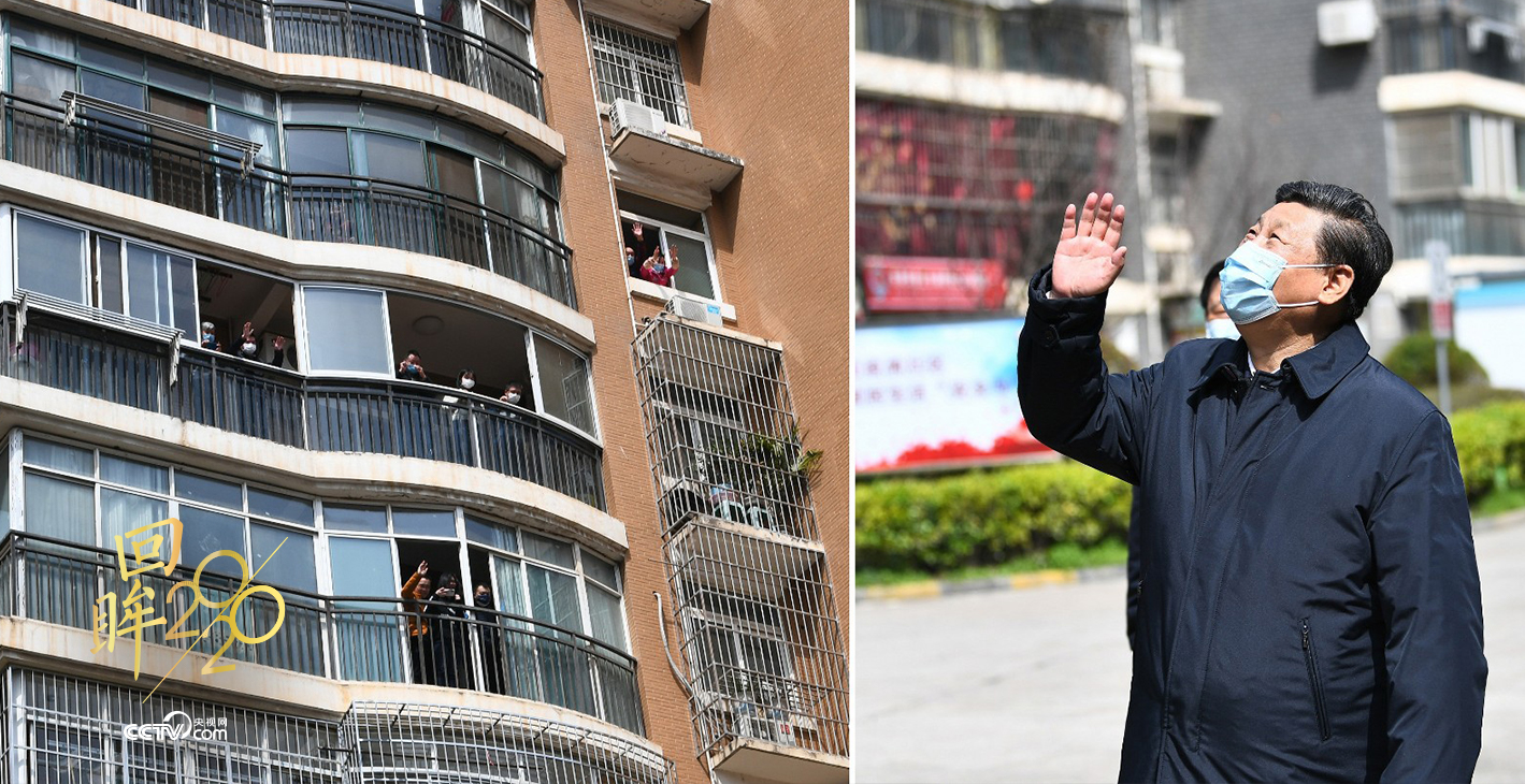 樓上,居家隔離的群眾望向窗外,有的搖著國旗高呼:“中國加油!武漢加油!”樓下,習(xí)近平總書記不時(shí)駐足,微笑著向大家揮手致意:“大家一起加油,再堅(jiān)持一下!”目光中飽含關(guān)切。