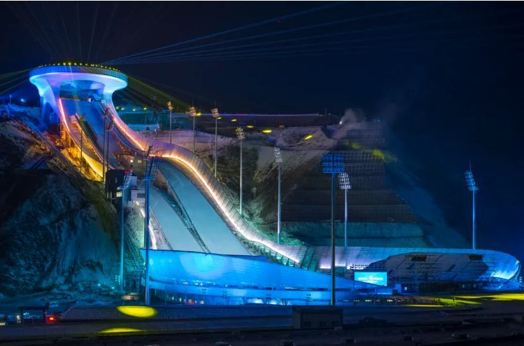 ↑位于河北省張家口市崇禮區(qū)的國家跳臺滑雪中心別名“雪如意”,是北京冬奧會的主要比賽場館之一。主體建筑靈感來自中國傳統飾物“如意”,實現了建筑設計和中國傳統文化的有機結合,也是2022年北京冬奧會張家口賽區(qū)工程量最大、技術難度最高的競賽場館。這是“雪如意”夜間燈光點亮效果(無人機照片,2020年12月19日攝)。新華社發(fā)