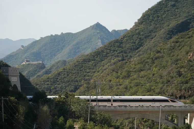 ↑2019年12月30日,北京冬奧會重要配套基礎設施工程——北京至張家口高速鐵路開通運營。京張高鐵是由我國自主設計建造的時速350公里智能高速鐵路。開通后,北京至張家口太子城的冬奧會主賽場可在1小時內通達,同時為推動北京非首都功能疏解、京津冀協同發(fā)展注入新動力。這是一列復興號高鐵列車從京張高鐵駛過居庸關長城(2020年10月6日攝)。新華社記者 鞠煥宗 攝