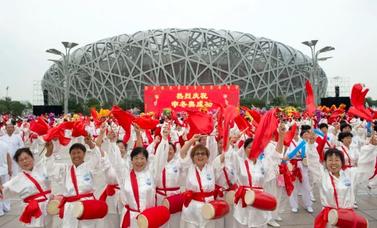 ↑2015年7月31日,市民在北京國家體育場“鳥巢”前慶祝北京攜手張家口獲得2022年冬奧會舉辦權。新華社記者謝環(huán)馳攝