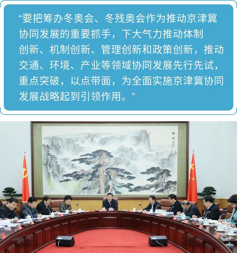 ↑2016年3月18日,中共中央總書記、國家主席、中央軍委主席習近平在中南海主持召開會議,專題聽取北京冬奧會和冬殘奧會籌辦工作情況匯報并作重要講話。新華社記者 蘭紅光 攝