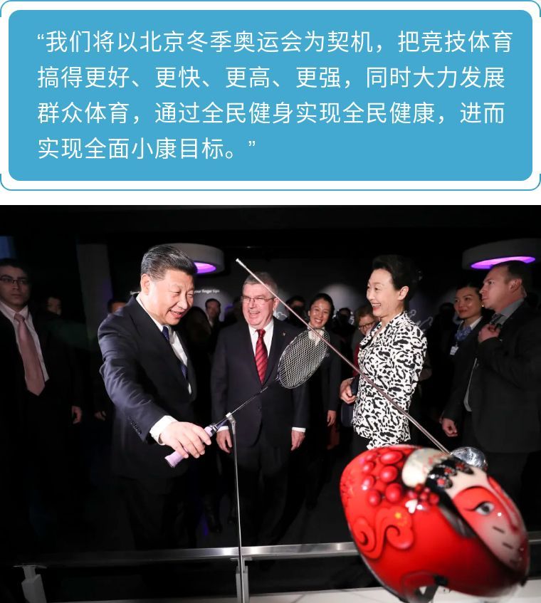 ↑2017年1月18日,國家主席習近平在瑞士洛桑國際奧林匹克博物館會見國際奧林匹克委員會主席巴赫。這是習近平在巴赫陪同下,參觀羽毛球世界冠軍李玲蔚用過的球拍。新華社記者 蘭紅光 攝