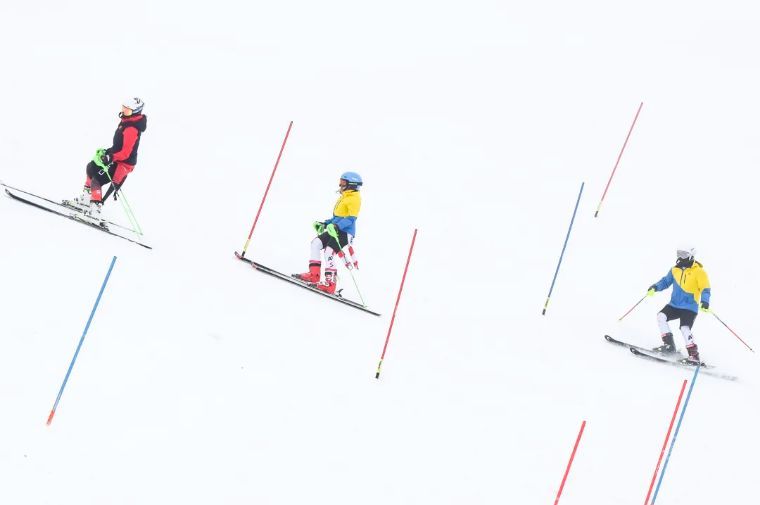 ↑為備戰(zhàn)2022年北京冬奧會,選拔優(yōu)秀隊員,中國國家高山滑雪集訓隊自2018年底起陸續(xù)在歐洲阿爾卑斯山區(qū)多個雪地訓練基地內開展訓練和比賽。這是在奧地利蒂羅爾州一處雪場內,集訓隊隊員們在進行熱身訓練(2019年4月5日攝)。新華社記者 郭晨 攝
