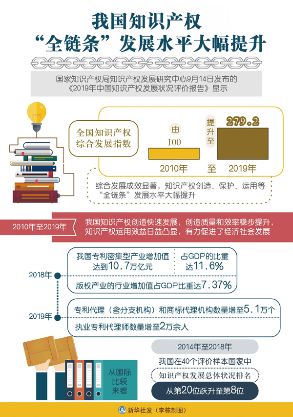 ——在加強(qiáng)頂層設(shè)計方面,黨的十九屆五中全會提出,加強(qiáng)知識產(chǎn)權(quán)保護(hù),大幅提高科技成果轉(zhuǎn)移轉(zhuǎn)化成效。中央全面深化改革領(lǐng)導(dǎo)小組先后審議通過《知識產(chǎn)權(quán)綜合管理改革試點總體方案》、《關(guān)于加強(qiáng)知識產(chǎn)權(quán)審判領(lǐng)域改革創(chuàng)新若干問題的意見》等重要文件,國務(wù)院印發(fā)《深入實施國家知識產(chǎn)權(quán)戰(zhàn)略行動計劃(2014—2020年)》、《關(guān)于新形勢下加快知識產(chǎn)權(quán)強(qiáng)國建設(shè)的若干意見》等重要文件,知識產(chǎn)權(quán)保護(hù)工作的頂層設(shè)計日益完善。