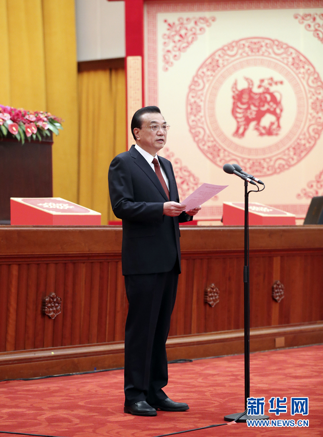 黨和國(guó)家領(lǐng)導(dǎo)人李克強(qiáng)、栗戰(zhàn)書、汪洋、王滬寧、趙樂(lè)際、韓正、王岐山等出席團(tuán)拜會(huì),李克強(qiáng)主持。