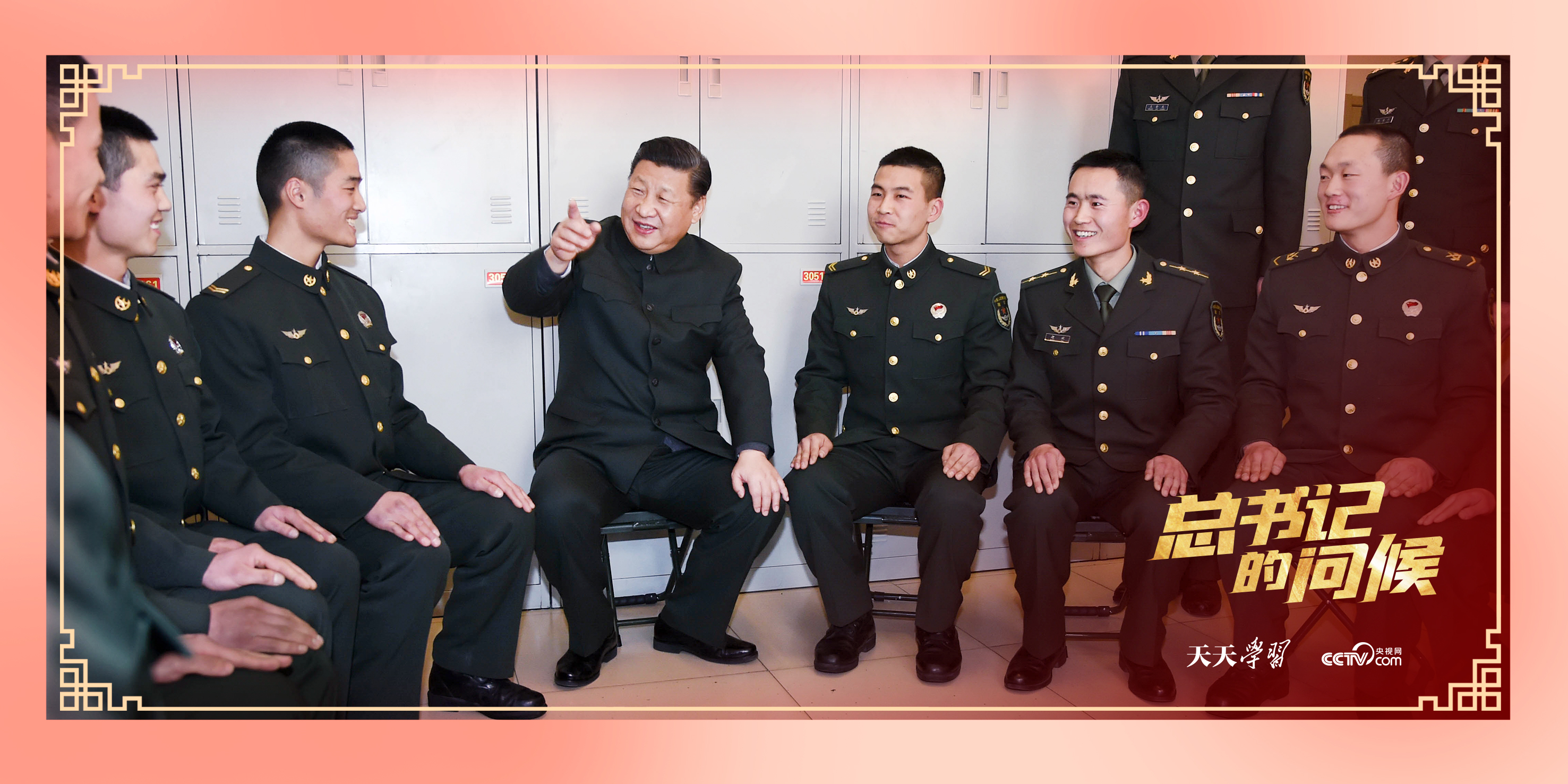 2017年1月,習(xí)近平主席視察駐張家口部隊,他走進戰(zhàn)士們的宿舍,摸摸被褥,看看衣物,關(guān)切地詢問戰(zhàn)士們能不能洗上熱水澡、晚上宿舍冷不冷、過節(jié)準備得怎么樣。戰(zhàn)士們唱起《“四有”標準立起來》,習(xí)近平主席帶頭給戰(zhàn)士們鼓掌,與大家圍坐在一起親切交談。