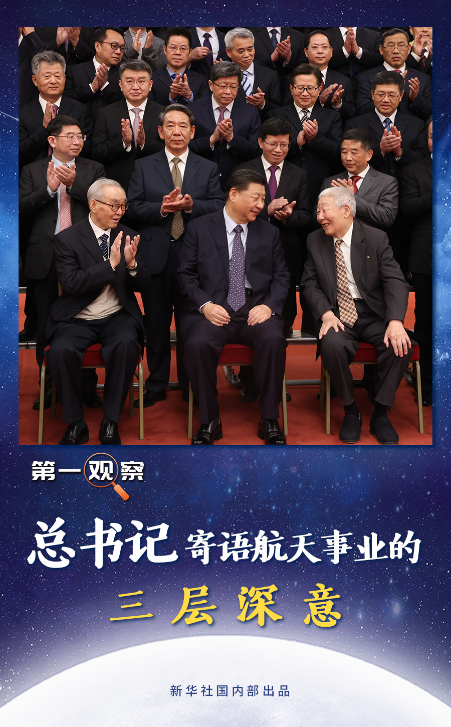 此次,總書記強(qiáng)調(diào):“探索浩瀚宇宙是人類的共同夢(mèng)想,要推動(dòng)實(shí)施好探月工程四期,一步一個(gè)腳印開啟星際探測(cè)新征程。”更強(qiáng)調(diào):“為增進(jìn)人類福祉作出新的更大貢獻(xiàn)。”一字一句,始終關(guān)切著中國航天事業(yè)未來的發(fā)展。