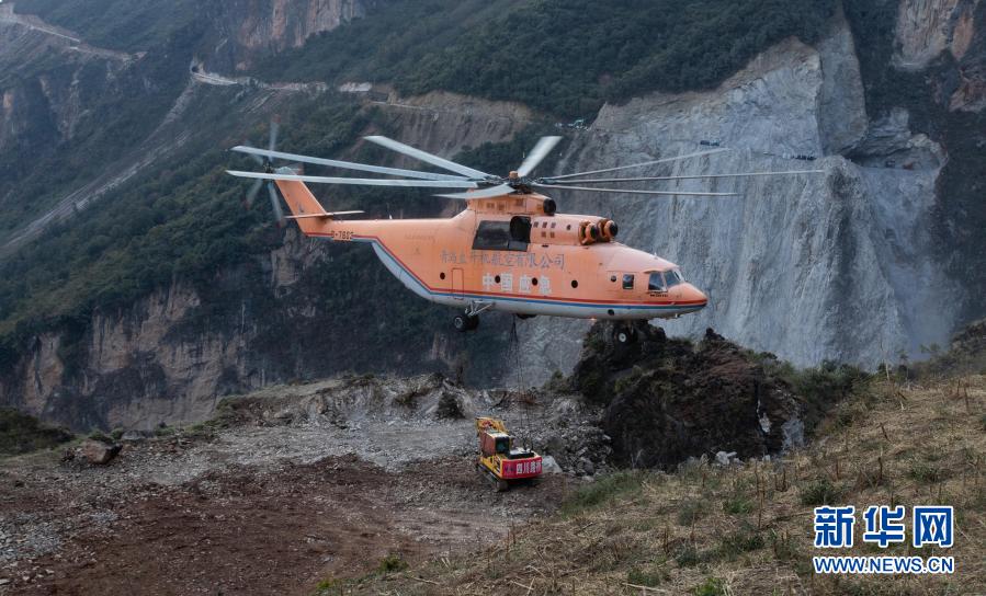 米-26重型直升機吊運一臺挖掘機抵達四川省布拖縣阿布洛哈村上空準(zhǔn)備降落(2019年12月5日攝)。為了打通四川省布拖縣阿布洛哈通村公路,施工單位租用的一架米-26重型直升機克服高山峽谷、天氣多變等不利因素,從布拖縣城吊運大型施工設(shè)備到阿布洛哈村,為兩邊分頭掘進施工提供大型機械保障。新華社記者 江宏景 攝