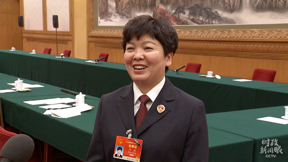 △沙沨代表在當天的發(fā)言中,建議將基層治理以法治化手段實現(xiàn),一站式服務(wù)讓百姓少跑路。(總臺央視記者張曉鵬拍攝)
