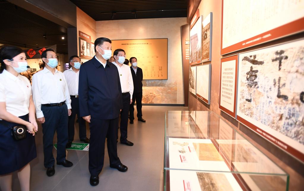 2020年9月16日,習(xí)近平在郴州市汝城縣文明瑤族鄉(xiāng)沙洲瑤族村“半條被子的溫暖”專(zhuān)題陳列館,了解當(dāng)?shù)亻_(kāi)展紅色教育情況。(新華社記者 謝環(huán)馳 攝)
