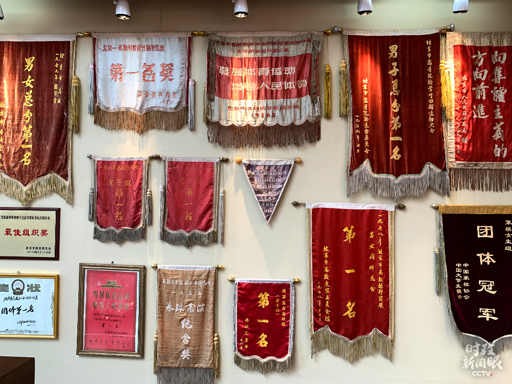 △陳列在體育榮譽(yù)室的錦旗(總臺央視記者石偉明拍攝)