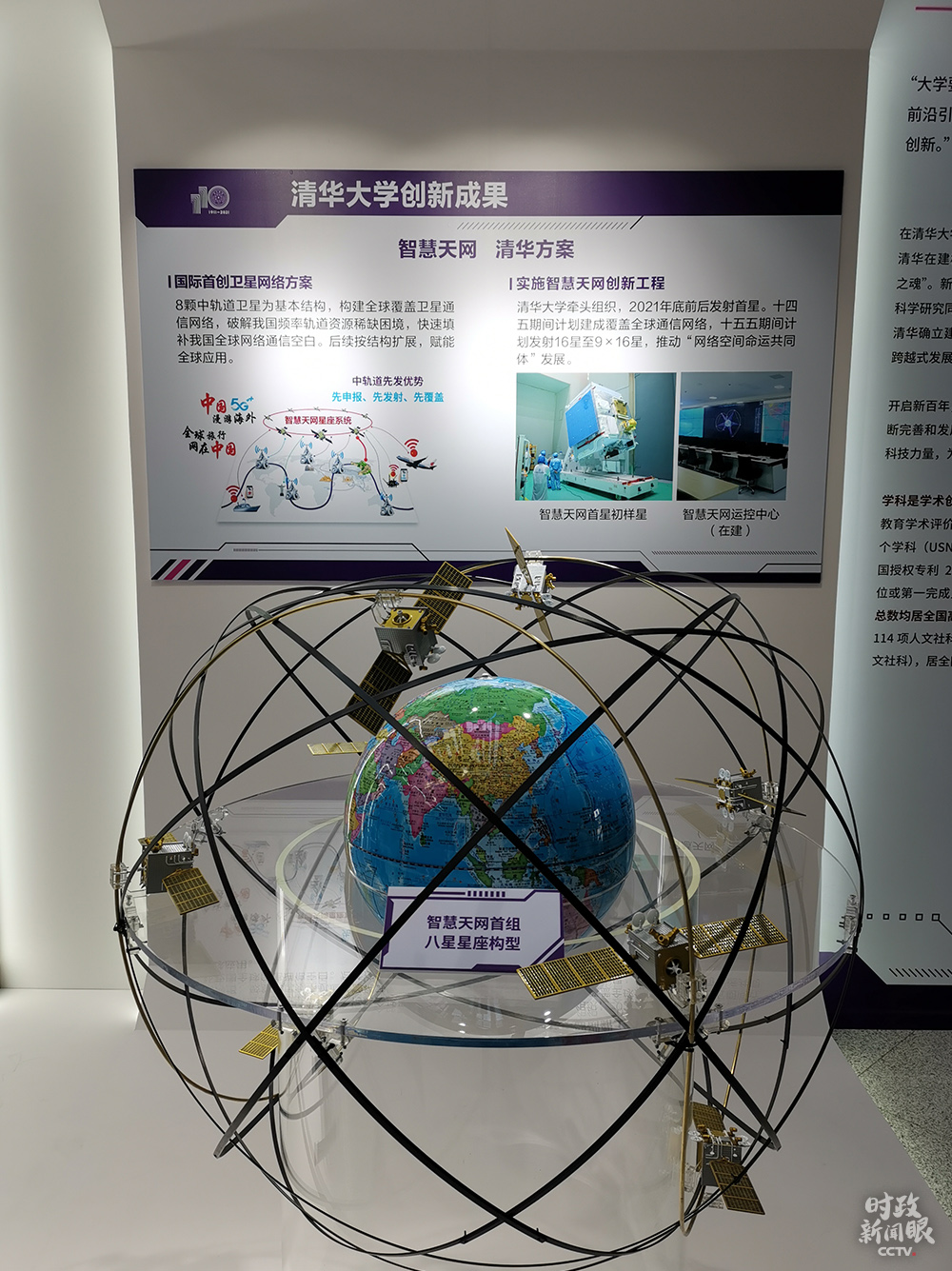 △智慧天網(wǎng)首組八星星座構(gòu)型,以8顆中軌道衛(wèi)星為基本結(jié)構(gòu),構(gòu)建全球覆蓋衛(wèi)星通信網(wǎng)絡(luò),破解我國頻率軌道資源稀缺困境。(總臺央視記者魏建拍攝)