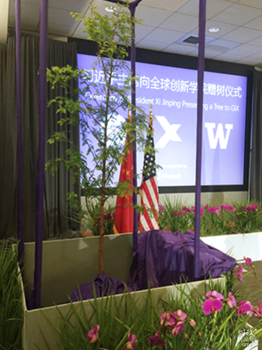 △2015年9月23日,習(xí)近平主席在參觀美國微軟公司總部時,向清華大學(xué)和華盛頓大學(xué)聯(lián)合創(chuàng)辦的全球創(chuàng)新交流學(xué)院贈送水杉樹苗,寓意友誼常青,茁壯成長。(資料圖)