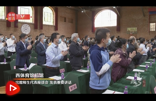 在西體育館后館,習近平總書記出席師生代表座談會,發(fā)表重要講話。他強調(diào)堅持中國特色世界一流大學建設(shè)目標方向,為服務(wù)國家富強、民族復興、人民幸福貢獻力量。