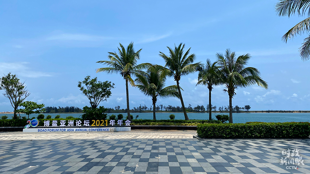 △博鰲亞洲論壇2021年年會新聞中心室外,椰風海韻。(總臺央視記者耿旭菲拍攝)