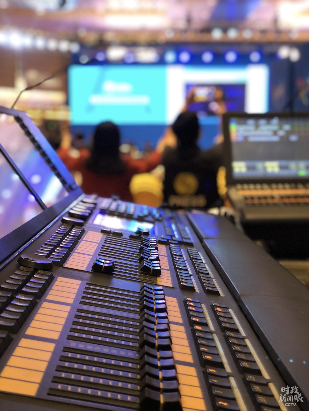 △開幕式現(xiàn)場的調(diào)音設備(總臺央廣記者劉樂拍攝)